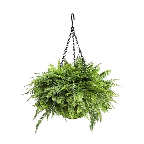 Artificial Hanging Fern Basket with Layered Greenery